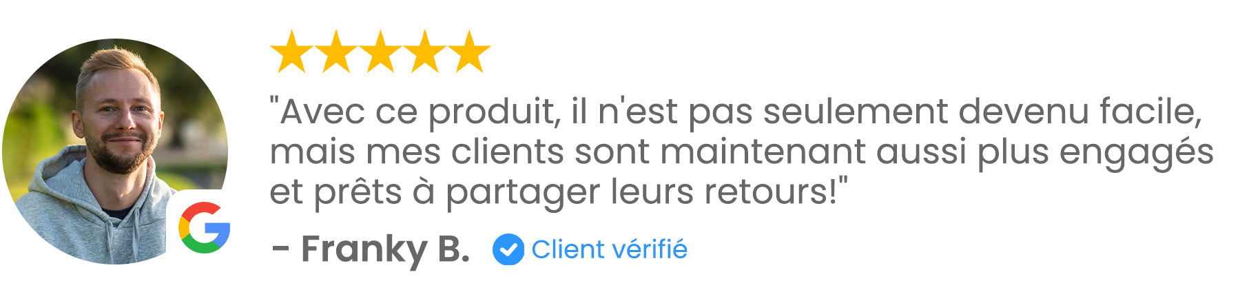 Non, les clients ont besoin d'un compte Google ou Tripadvisor pour publier un avis. Il convient toutefois de noter que la grande majorité des utilisateurs de smartphones possèdent déjà un compte Google. Des statistiques récentes montrent que 93 % des utilisateurs de smartphones possèdent un compte Google , ce qui signifie que la plupart des clients sont déjà configurés pour laisser facilement un avis.